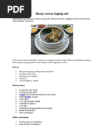 Di bawah ini kami tampilkan resep rawon daging otentik dengan bahan baku daging sandung lamur yang sering juga kita sebut dengan istilah daging rawonan. Resep masakan rawon daging merupakan resep masakan tradisional indonesia peninggalan para orang tua kita dahulu. Resep asli rawon, resep rawon daging, step by step membauat rawon, resep rawon dengna ini dia masakan khas jawa timur yang populer di seluruh kawasan nusantara : Resep rawon yang merupakan makanan khas jawa timur seperti daerah surabaya, atau juga di daerah surakarta jawa tengah. Siapkan piring, beri nasi secukupnya, siram dengan rawon dan taburi dengan tauge dan daun bawang. Resep rawon daging asli yang enak dan lezat yagn akan tentu dapat adna buat di rumah dengan mudah dan sederhana. Resep rawon ala chef rizky dari park hotel cawang jakarta, enak banget! Berikut ini resep rawon yang disajikan, sehingga anda bisa mencoba dengan membuat rawon yang enak dan lezat dan tentunya buatan sendiri. Dengan bumbu dan cara memasak yang tepat, rawon khas jawa timur ini bisa jadi sajian istimewa di meja makan kita. Rawon kerap dijuluki sebagai sop hitam (black soup). Resep rawon daging khas malang menarik untuk diulas karena kita akan menemukan berbagai langsung saja kita ulas bersama mengenai resep rawon khas malang yang terkenal kelezatannya. • 400 gram daging sengkel potong kotak 2 cm • 1.500 ml air • 6 lembar daun jeruk buang tulangnya • 1 batang serai ambil putihnya, memarkan • 1 batang daun bawang potong 1. 200 grm beras wangi, cuci sampai bersih 100 grm daging sapi di ptong kecil kecil atau sesuai selera 500.